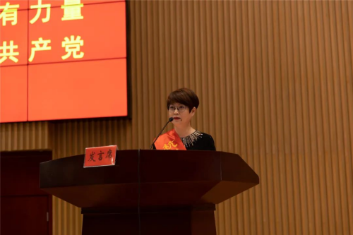 ▲縣五一勞動獎?wù)麓戆l(fā)言—縣婦幼保健院主任醫(yī)師王丹鳳
